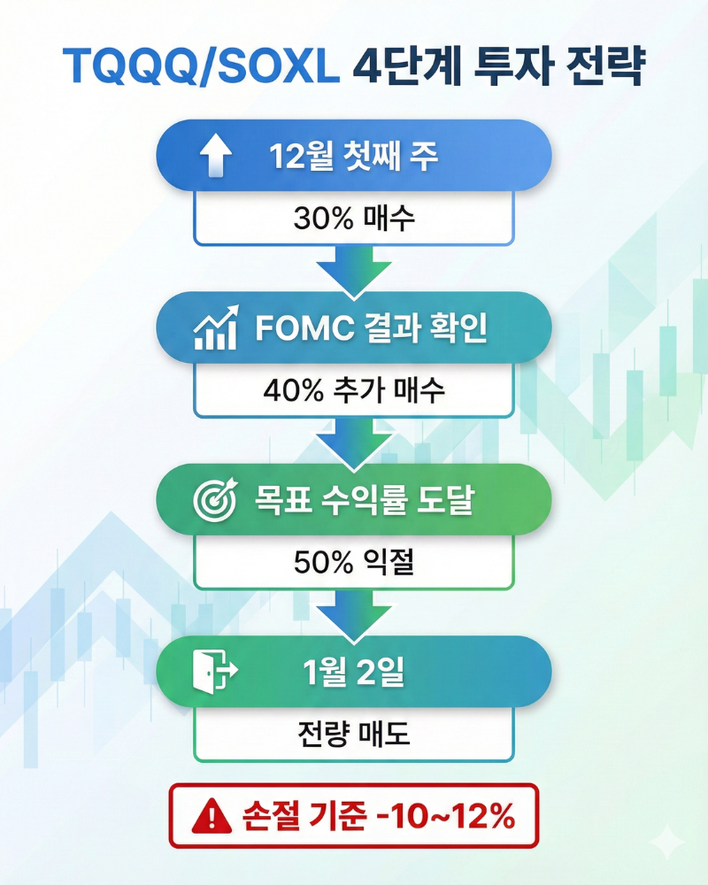 ✅ TQQQ/SOXL 12월 투자 전략 4단계 플로우차트